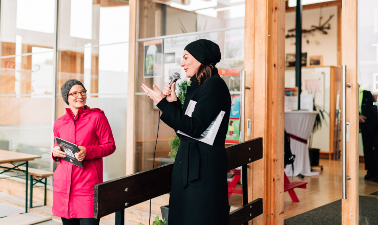 Kurt Fischer, Bürgermeister von Lustenau, begrüßte die rund 50 Teilnehmer*innen gemeinsam mit Bettina Steindl und Alexandra Hefel. Kurt Fischer war begeistert, dass so viele Mutige am Ausflug teilnahmen. Trotz Wind, Regen und winterlichen Temperaturen.#daswarkalt